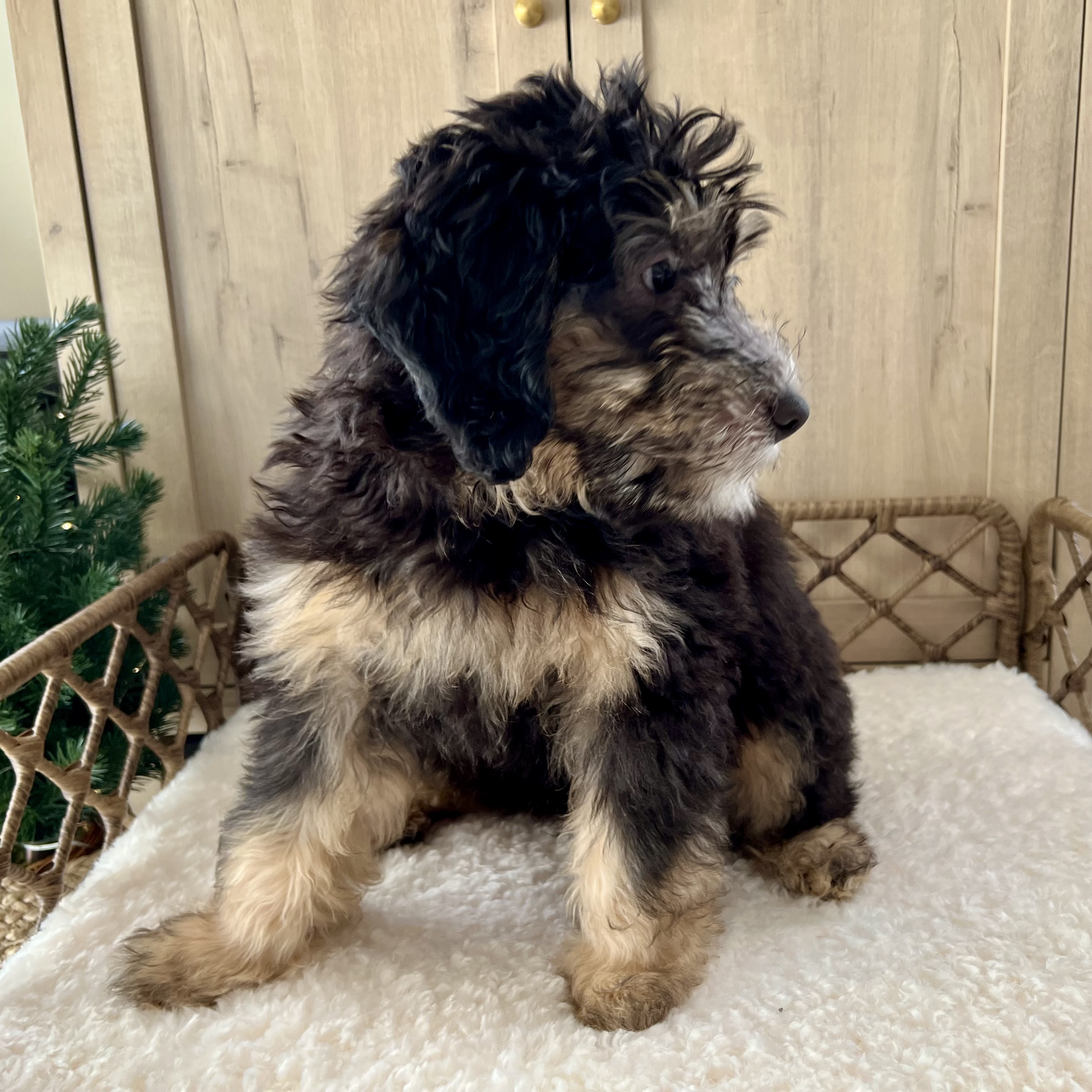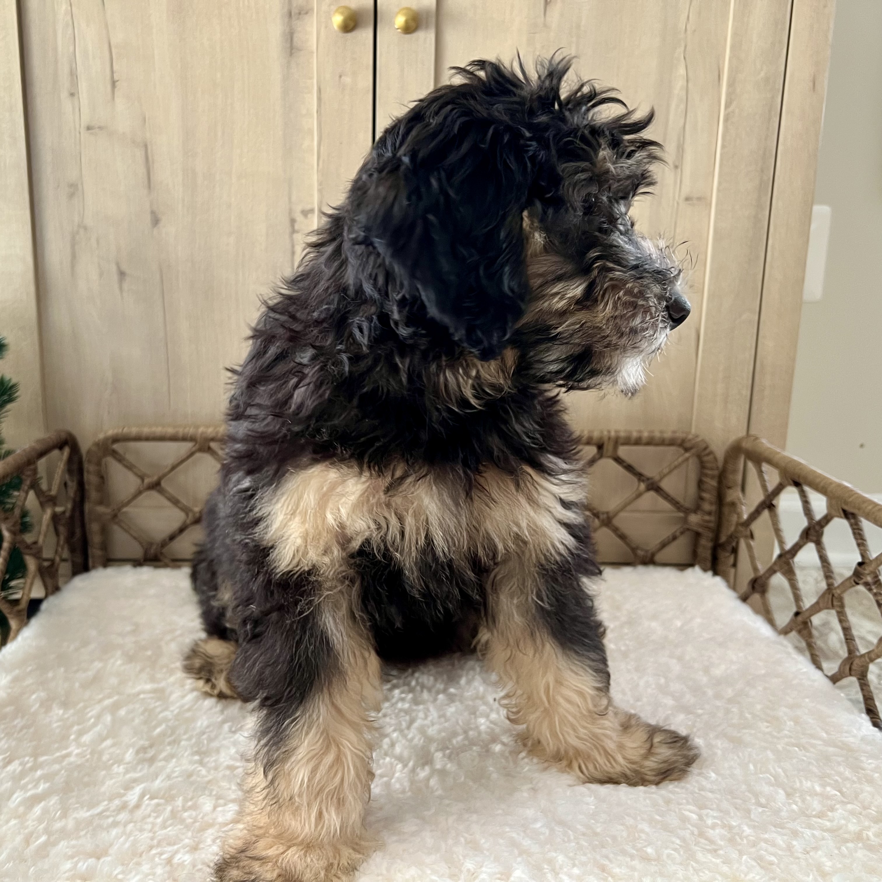 This easygoing boy has mastered both crate training and potty pad training with ease. Unlike puppies raised in kennel environments, Thing has been raised right in our family home, learning proper indoor manners while enjoying the freedom to explore and bond with our family. He behaves beautifully in our home and interacts gently with all of our children, including our 12, 10, and 2-year-olds, as well as our 2-week-old newborn.