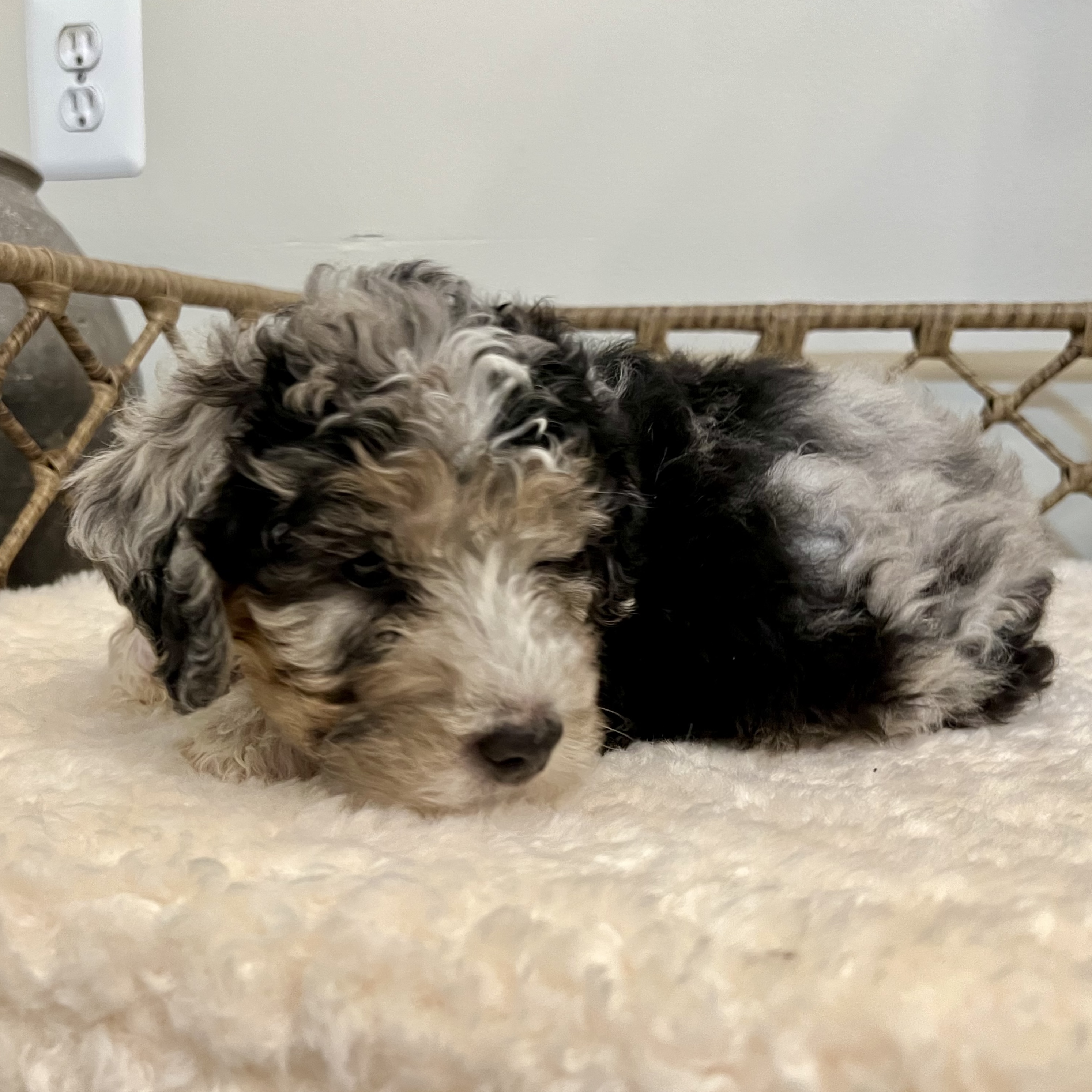 Litter - Lola x BannerBorn: September 1FemaleMerleVery Curly Coat~20 lbs at maturity (Our smallest puppy yet)Current on shots & dewormingsVet checked1 year genetic health guarantee